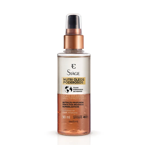 Com o Óleo Bifásico Siàge Nutri Óleos Poderosos você garante cabelos 2x mais macios e multiproteção aos fios: alta proteção térmica e antipoluição.