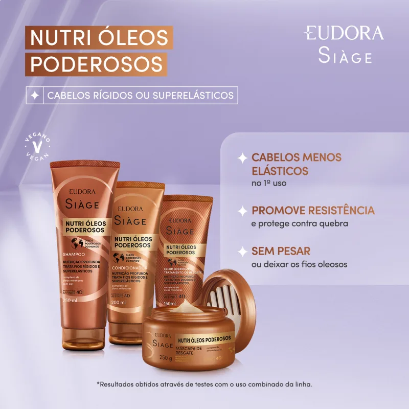 A linha Siàge Nutri Óleos Poderosos é vegana, cruelty free e para todos os tipos de cabelos!