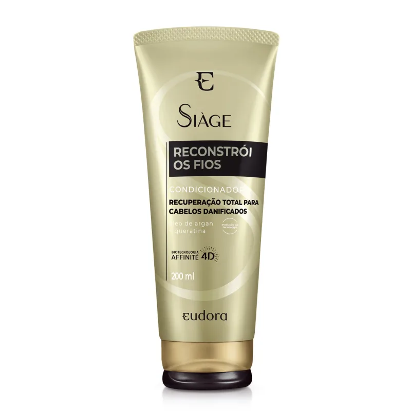 Eudora Siàge uniu a força da natureza ao poder da ciência e criou a exclusiva biotecnologia Affinité 4D. Com inteligência detectora de danos, trata os fios até a camada mais profunda, mesmo após o enxágue. A linha Siàge Reconstrói os Fios conta com uma gama completa de produtos que entregam 6x mais força, combate as pontas duplas e quebradas e recupera 1 ano de danos em apenas duas semanas de tratamento.
