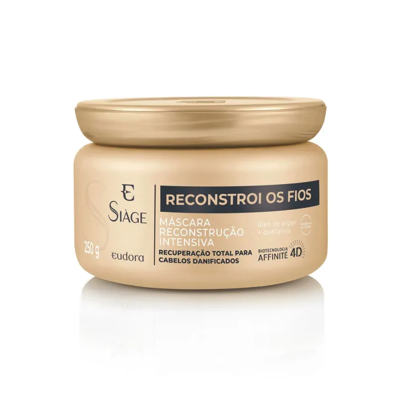 Eudora Siàge uniu a força da natureza ao poder da ciência e criou a exclusiva biotecnologia Affinité 4D. Com inteligência detectora de danos, trata os fios até a camada mais profunda, mesmo após o enxágue. A linha Siàge Reconstrói os Fios conta com uma gama completa de produtos que entregam 6x mais força, combate as pontas duplas e quebradas e recupera 1 ano de danos em apenas duas semanas de tratamento.