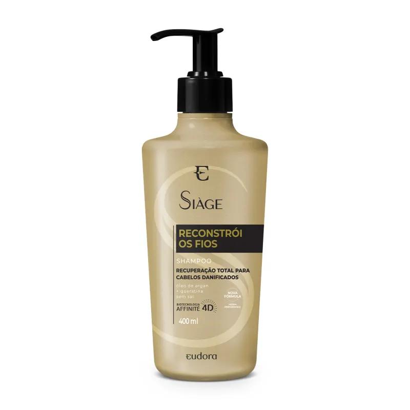 Eudora Siàge uniu a força da natureza ao poder da ciência e criou a exclusiva biotecnologia Affinité 4D. Com inteligência detectora de danos, trata os fios até a camada mais profunda, mesmo após o enxágue. A linha Siàge Reconstrói os Fios conta com uma gama completa de produtos que entregam 6x mais força, combate as pontas duplas e quebradas e recupera 1 ano de danos em apenas duas semanas de tratamento.